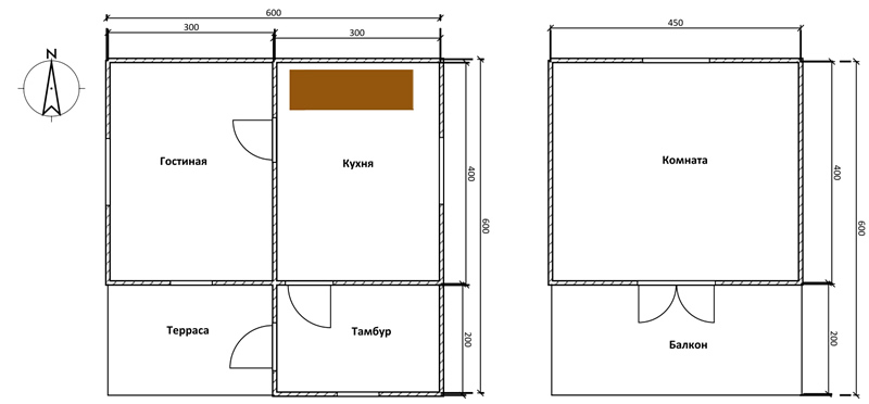 - Высота помещений: 2,5 м/2,2м