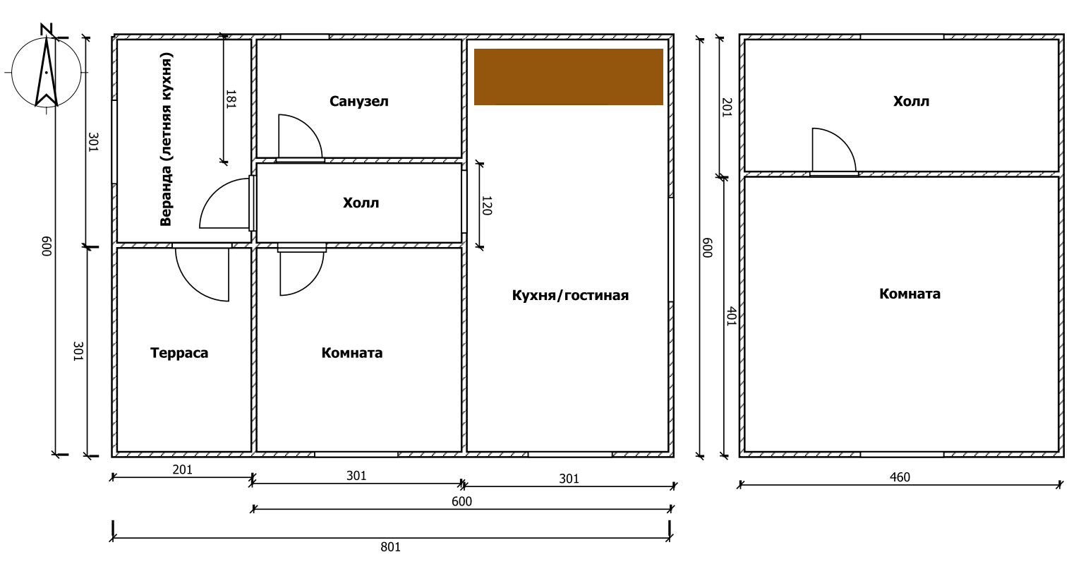 - Размеры: 48 м2 – площадь застройки; 69 м2 – площадь жилая
