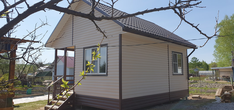 - Фасад: сайдинг виниловый «Grand Line» со всеми доборными элементами