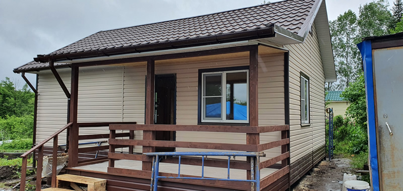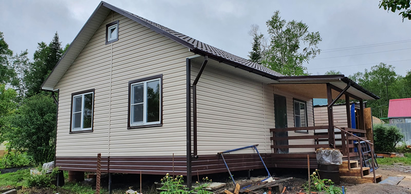 - Фасад: сайдинг виниловый «Grand Line» со всеми доборными элементами